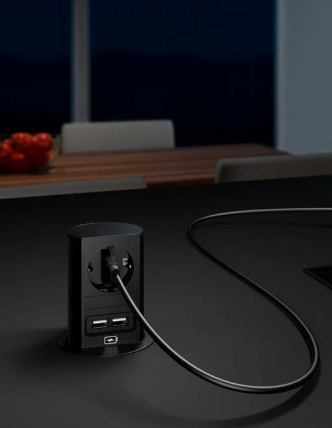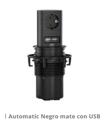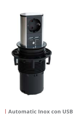 energy box Automatic, es ideal para instalar en prácticamente todas las encimeras de cocina o baño ocupando el mínimo espacio. Tiene un diámetro de encastre de 79 mm, y está disponible en el clásico aspecto inox y ahora también en aluminio anodizado negro.