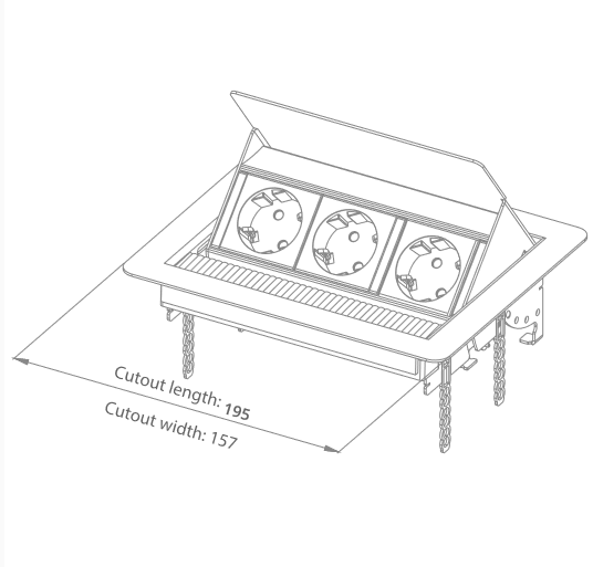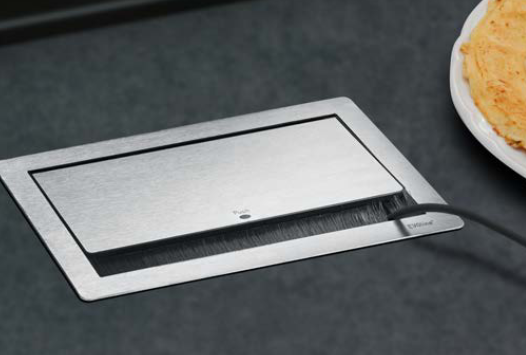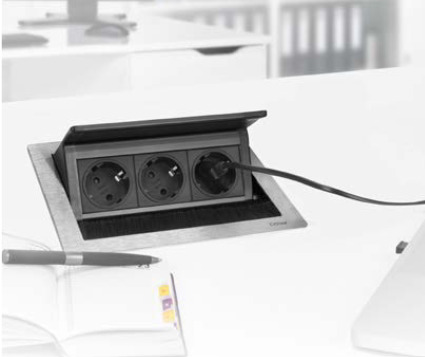 El FlipTop Push es una solución elegante que abastece todas las áreas de trabajo con 3 enchufes siempre disponibles. La forma de abrir el FlipTop Push, es mediante presión en la tapa. Los enchufes aparecen automáticamente hasta casi la posición final, donde hay que fijarlos en este punto de forma manual.
